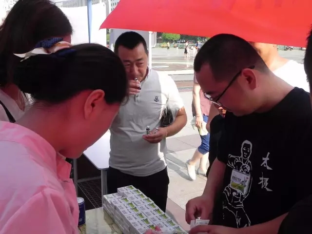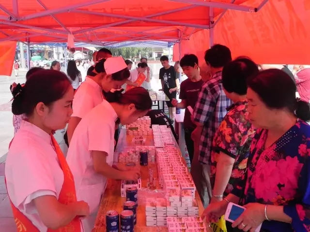 圖為:市民在現(xiàn)場免費(fèi)品嘗山西同仁康大藥房提供的太極藿香正氣口服液