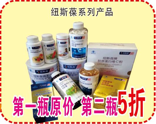 活動期間紐斯葆系列保健品全部******瓶原價,第二瓶半價;